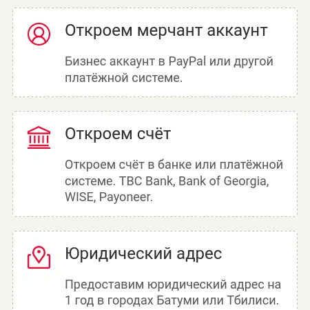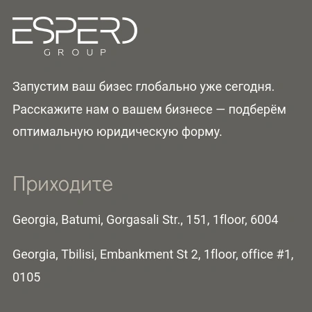 Я очень доволен сотрудничеством с компанией Espero при оформлении бизнеса в Грузии. Они предоставили мне качественную помощь и проявили высокий уровень профессионализма на протяжении всего процесса.